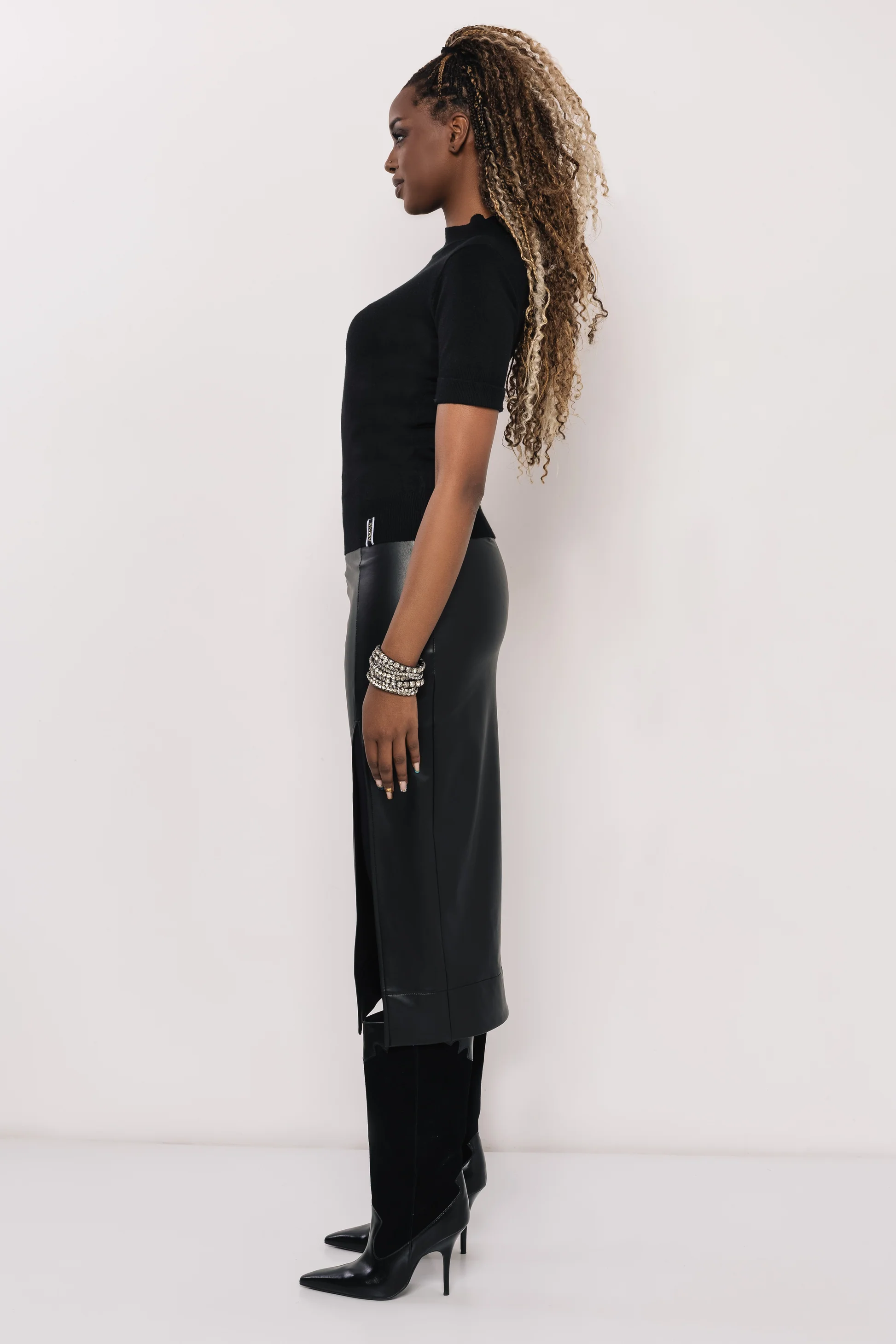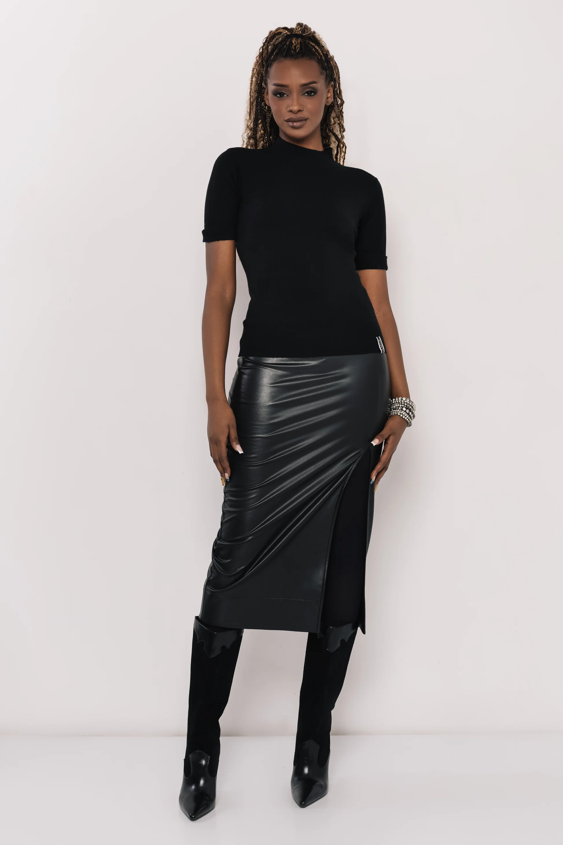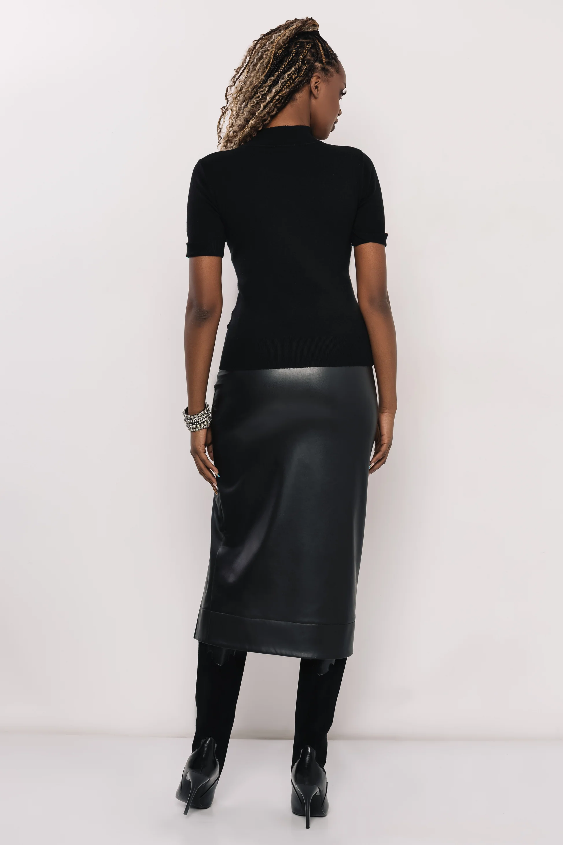 Kötött anyagból készült, amely lágyan simul és jó tartást ad a felsőnek. Egyméretes, így többféle alkaton is szépen áll. Fekete, bordó, csoki és ekrü színekben érhető el — mindegyik könnyen beépíthető a ruhatárba.
