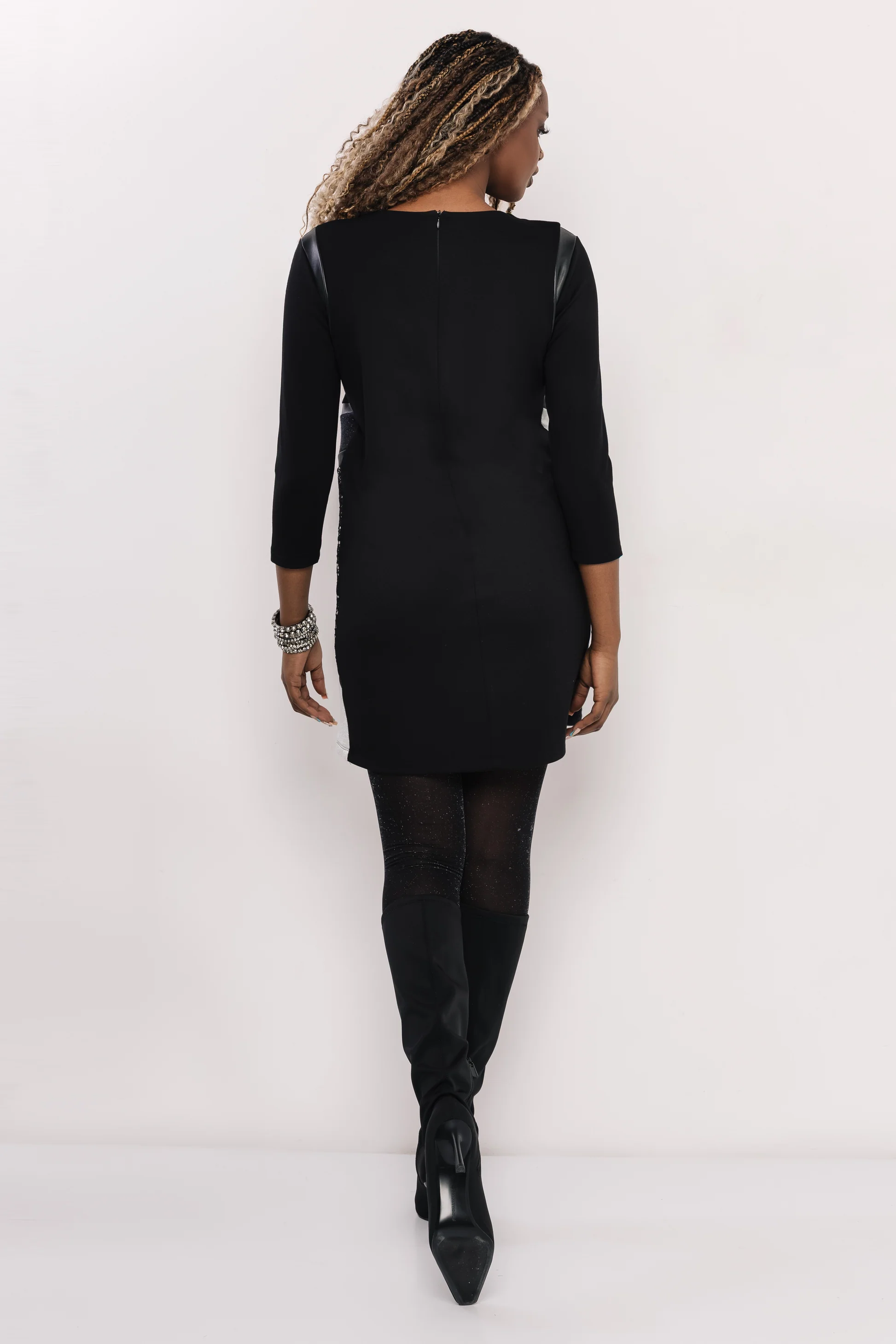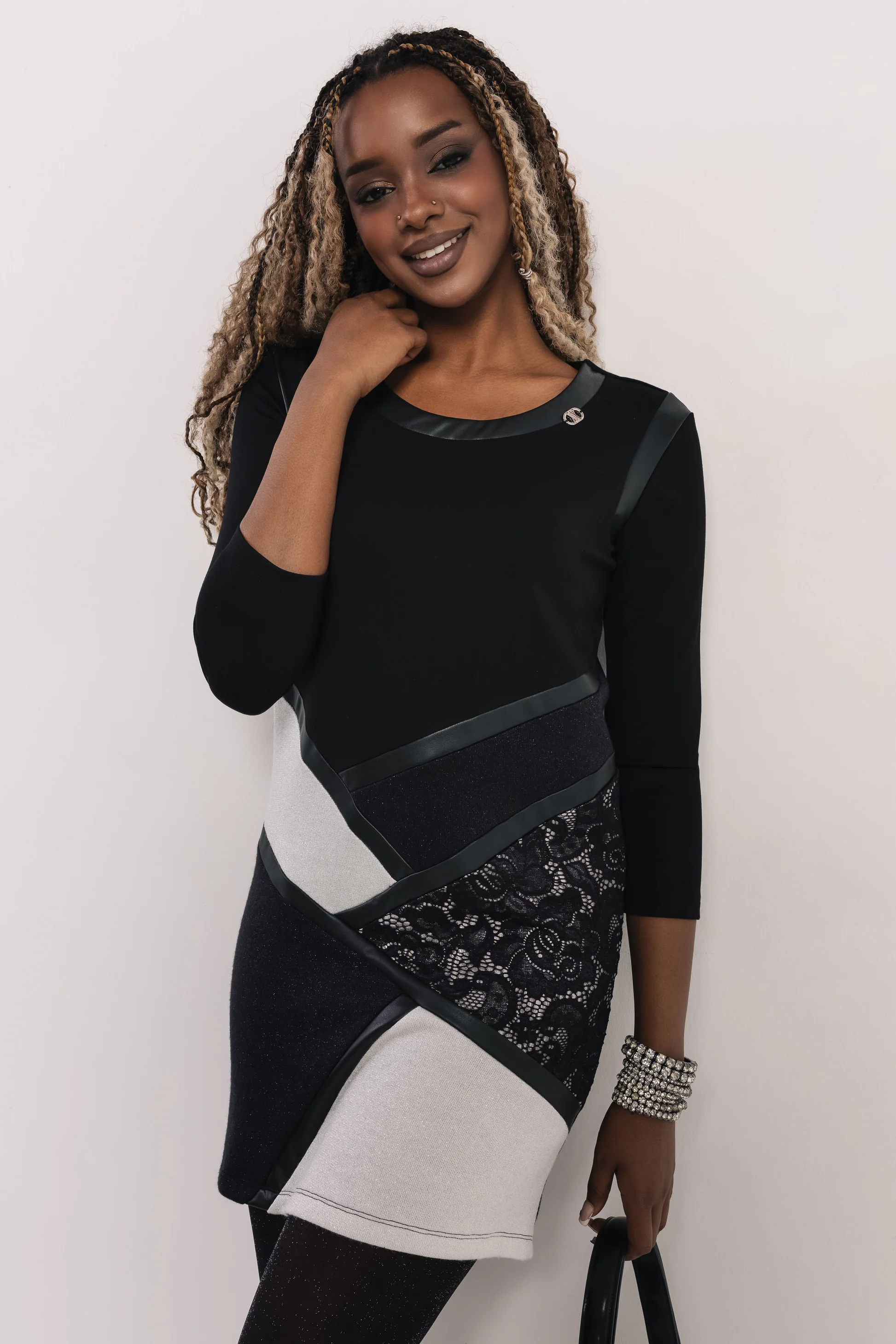 Önmagában is elég erős darab, de letisztult fekete kiegészítőkkel még jobban érvényesül. Harisnyával és csizmával, kifejezetten jó választás esti programra vagy alkalmi eseményre.