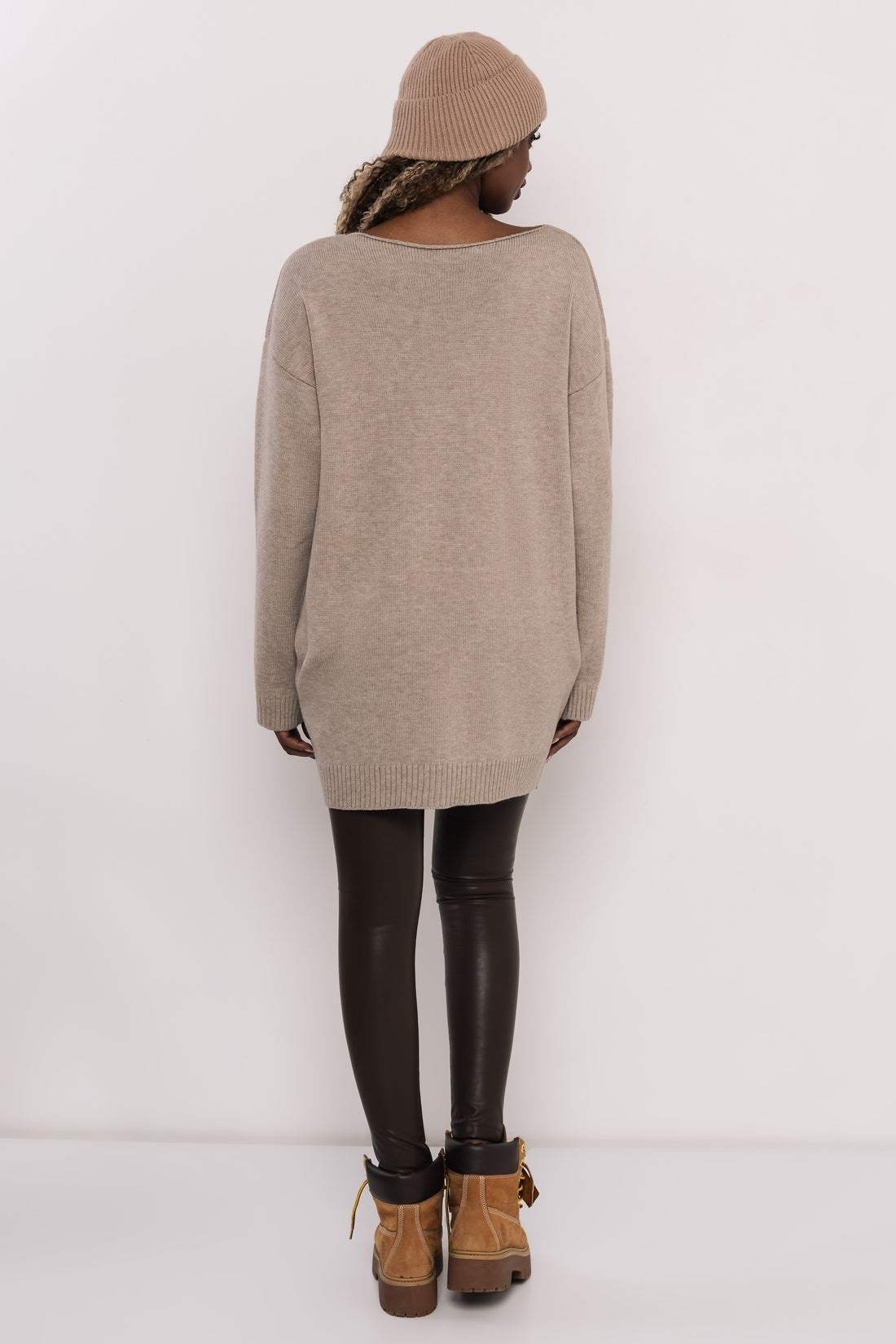 Kötött anyaga kellemes tapintású és jól tartja a formáját, a fazonja pedig laza, mégis nőies. A hosszított kialakítás modern és praktikus, a finom részletek pedig visszafogottan teszik különlegessé.