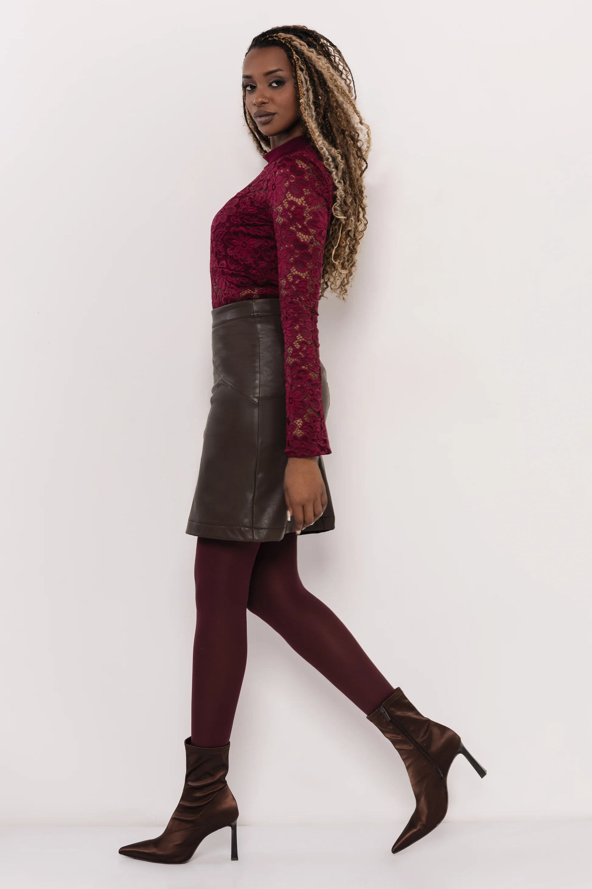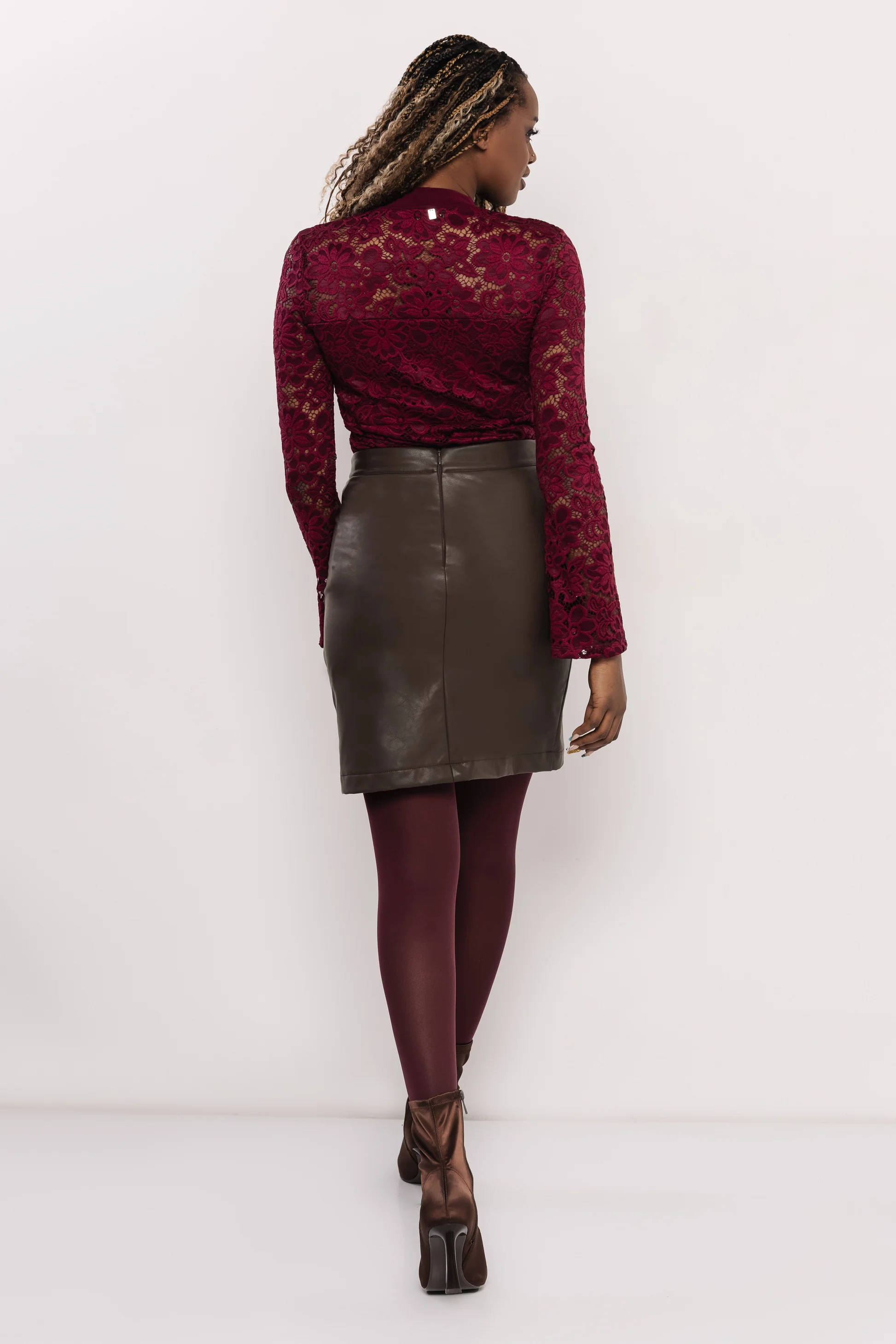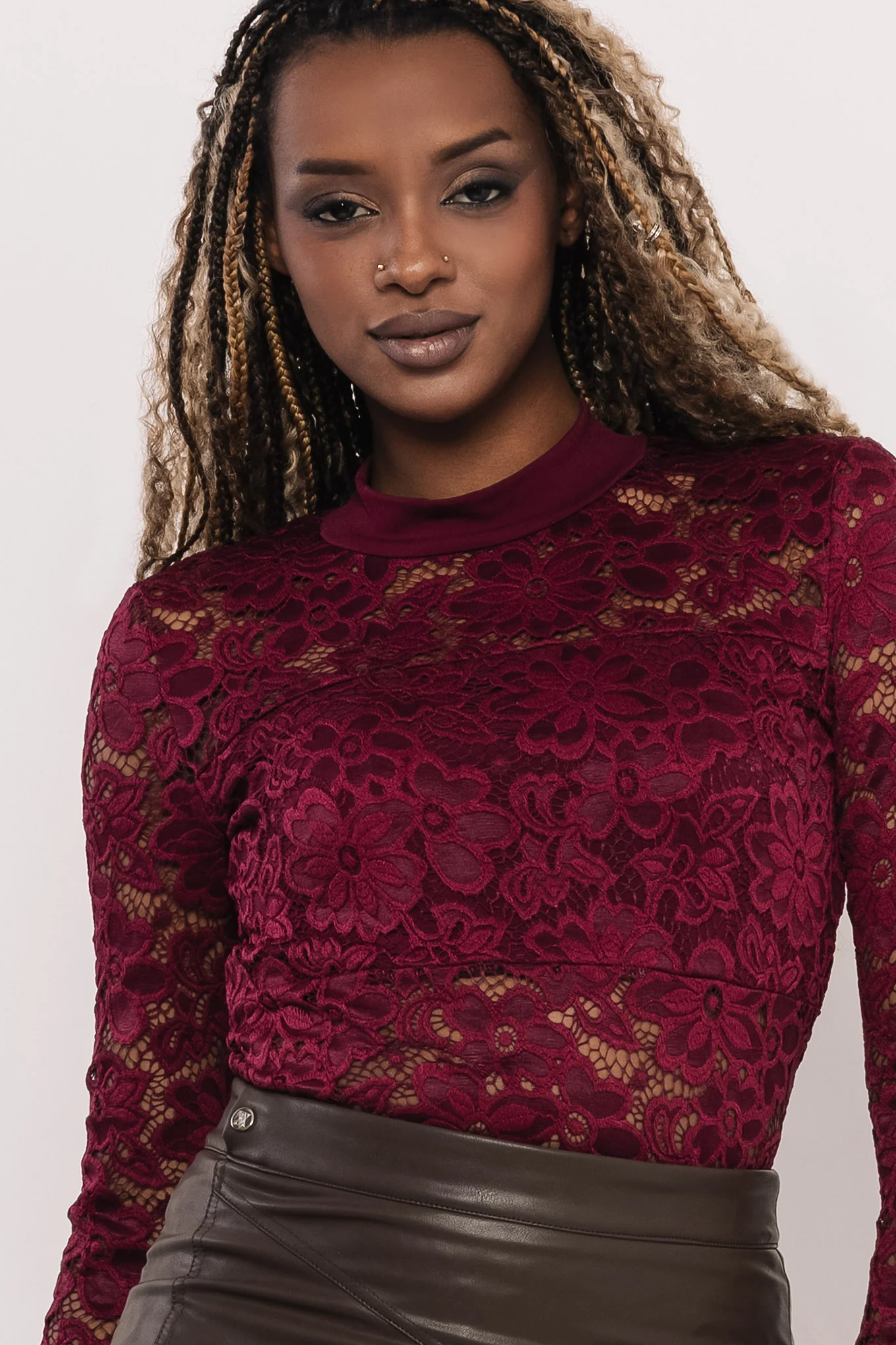 Az AMNESIA Velli felső finom csipkéjével és visszafogott fazonjával igazán elegáns megjelenést ad. Bordó színe különleges, mégis könnyen beilleszthető az ünnepi és alkalmi ruhatárba.
