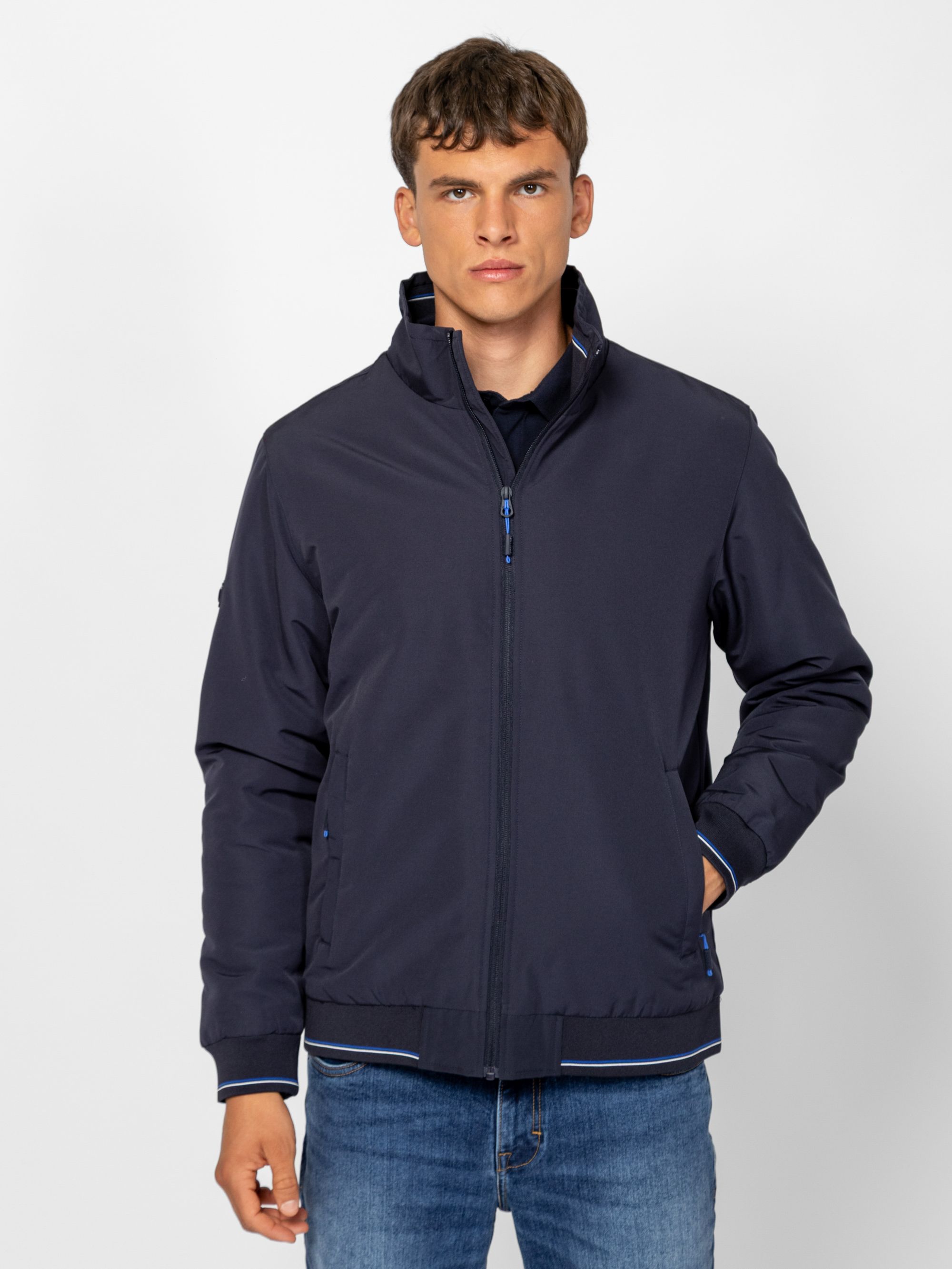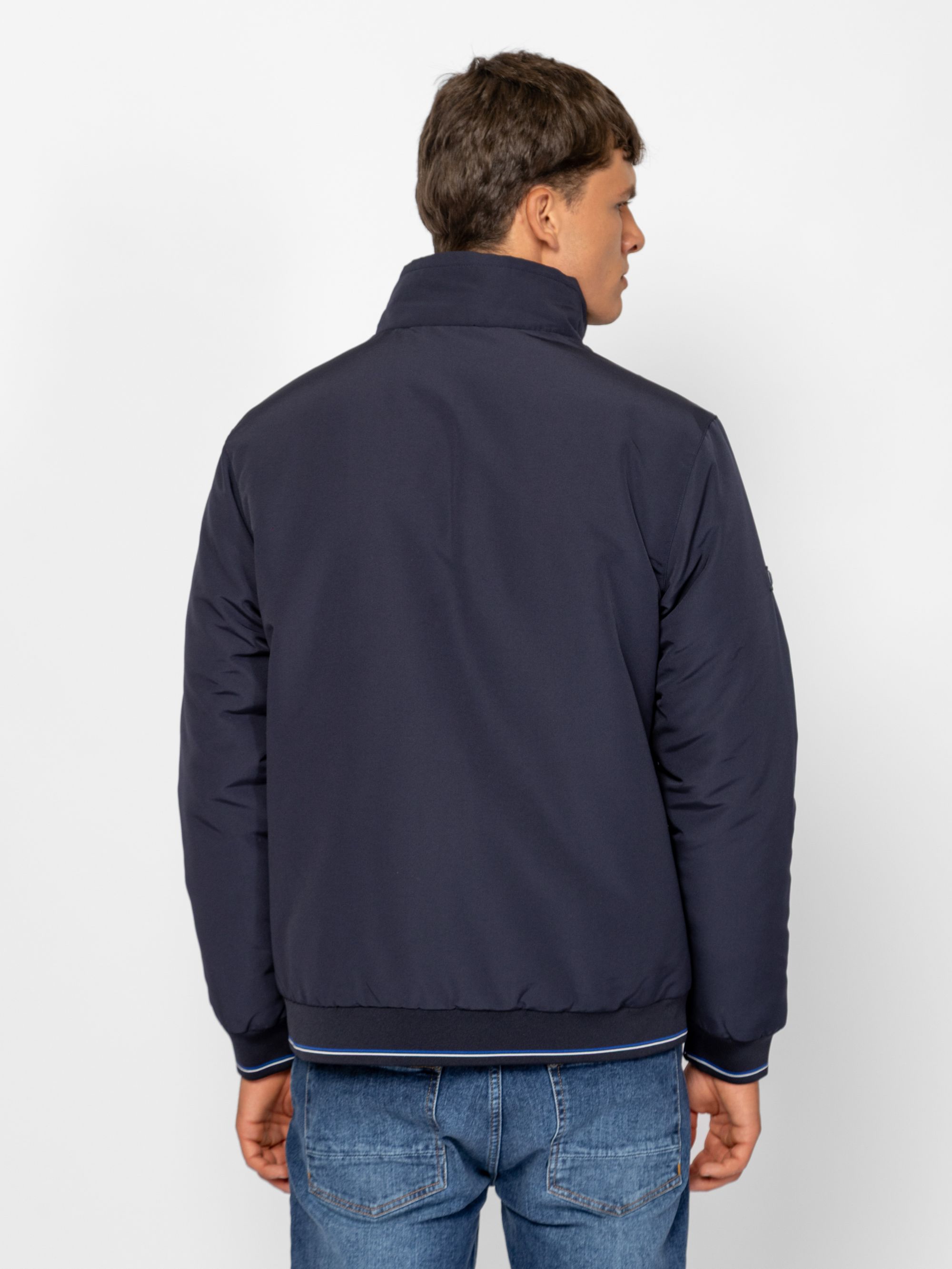 Férfi dzseki, klasszikus színekben, rövid állású, kényelmes fazonnal, cipzáras záródással, bordás passzés aljjal és kézelővel. Elején cipzáros zsebekkel, belső zsebbel, ujján kis fém márkajelzéssel. Anyaga: külső: 100% poliészter, bélés: 100% nylon, tömés: 100% poliészter. A modell 188 cm magas és L-es méretet visel.
