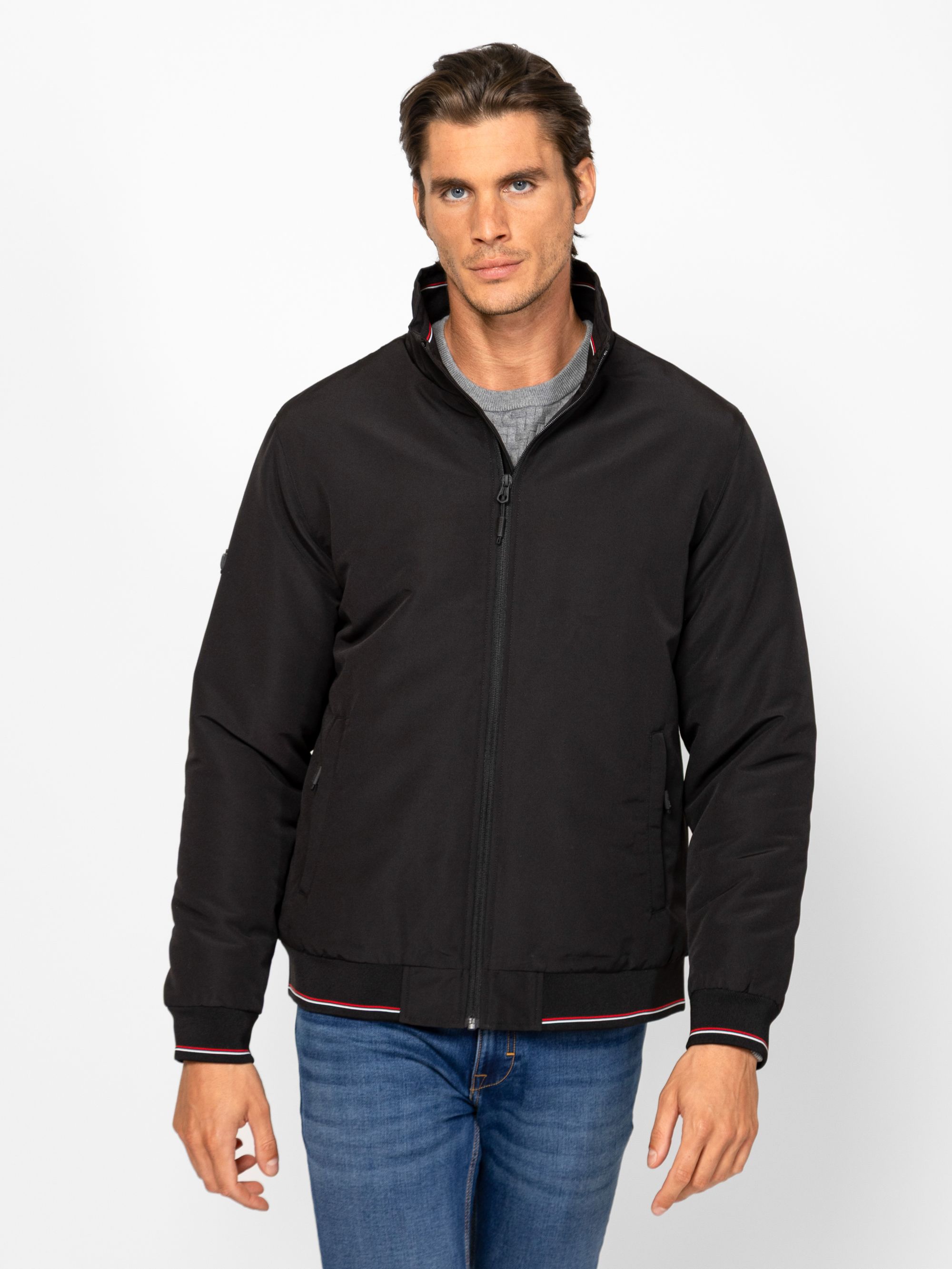 Férfi dzseki, klasszikus színekben, rövid állású, kényelmes fazonnal, cipzáras záródással, bordás passzés aljjal és kézelővel. Elején cipzáros zsebekkel, belső zsebbel, ujján kis fém márkajelzéssel. Anyaga: külső: 100% poliészter, bélés: 100% nylon, tömés: 100% poliészter. A modell 188 cm magas és L-es méretet visel.