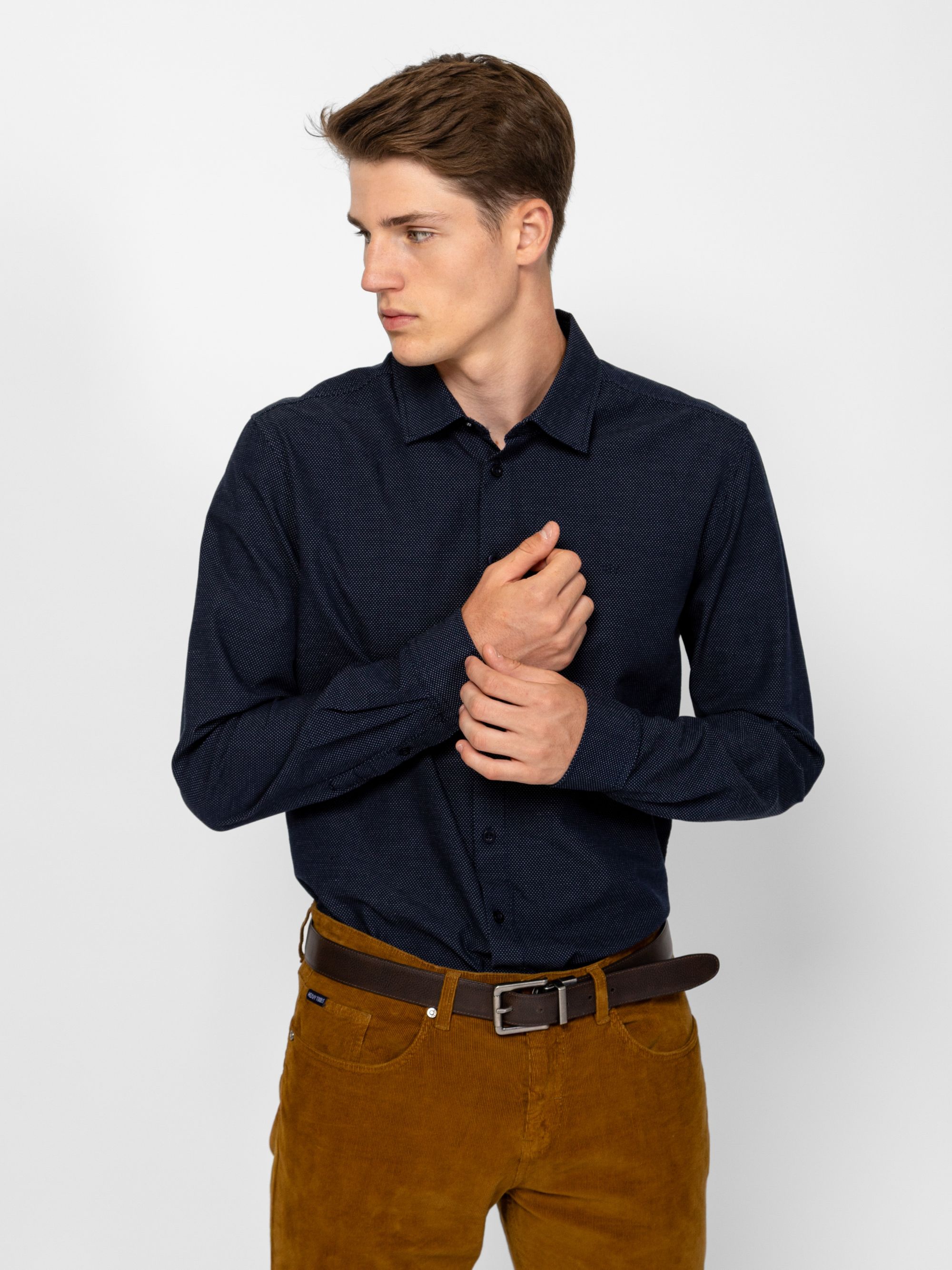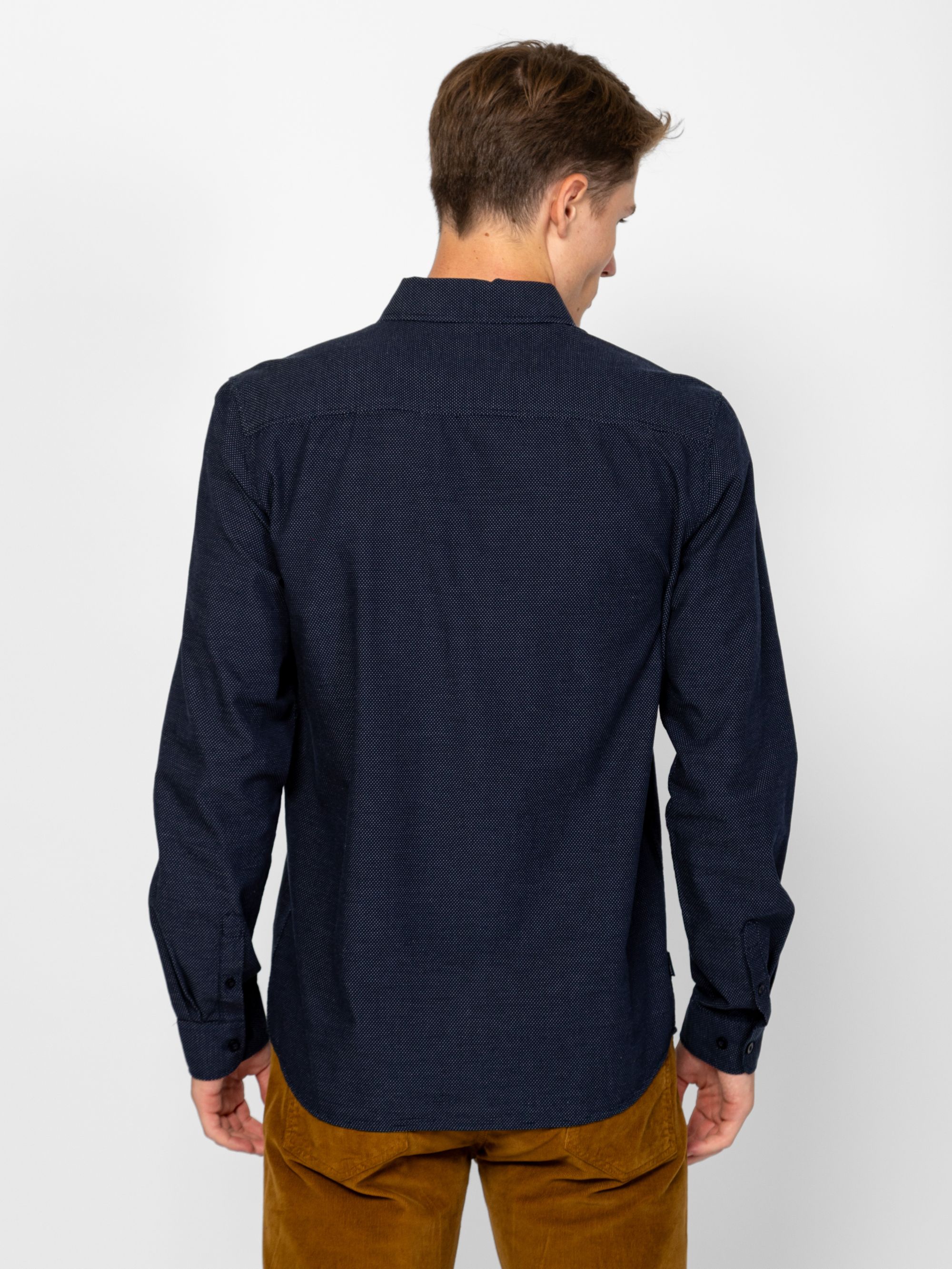 Férfi hosszú ujjú ing, comfort fit szabással, szépen kidolgozott gallér és mandzsetta megoldással, elején kis hímzett márkajelzéssel. A tiszta pamut anyag kellemes érzetet biztosít akár egész napos viselet során is. Anyaga: 100% pamut. A modell 188 cm magas és L-es méretet visel.