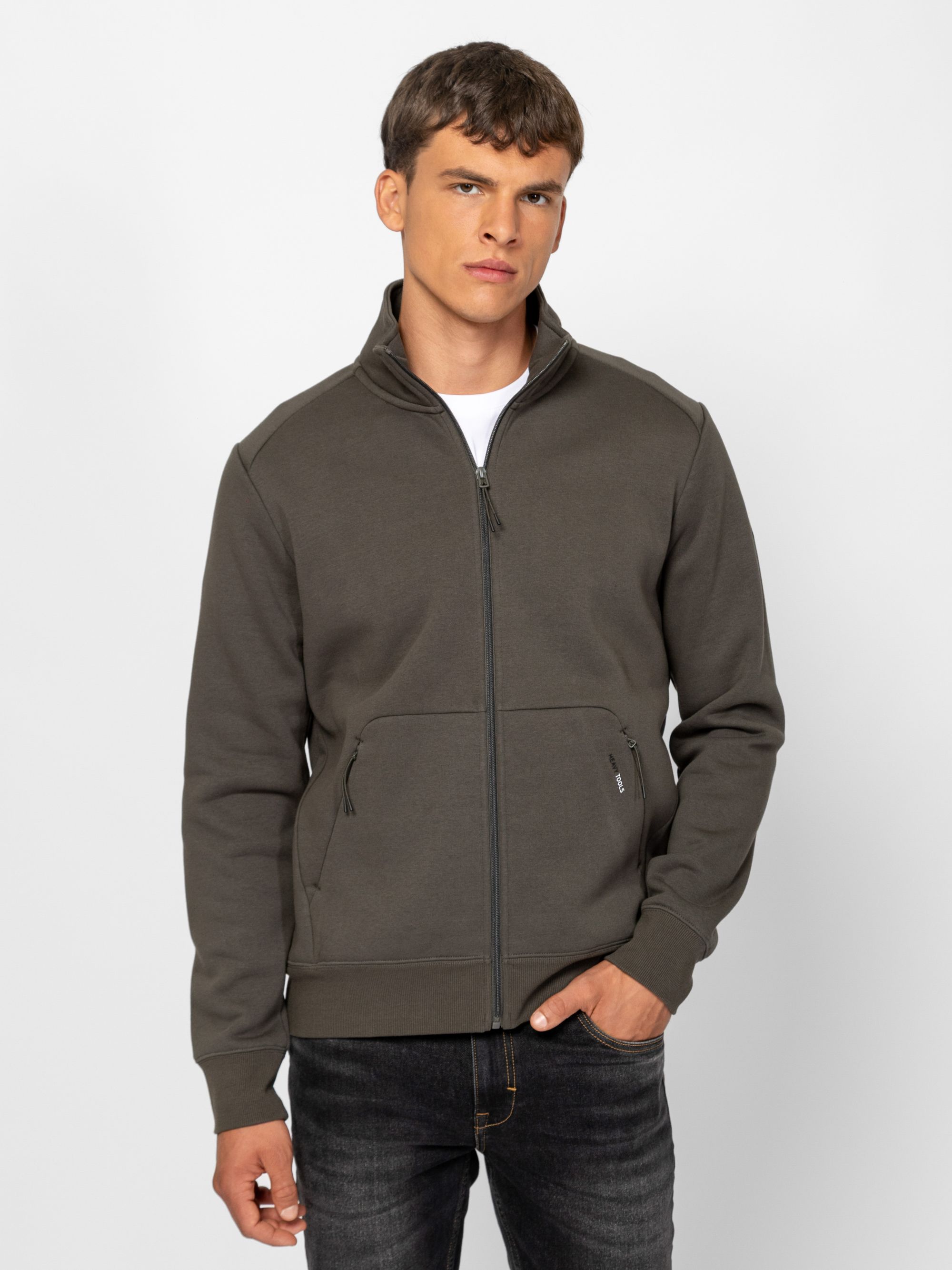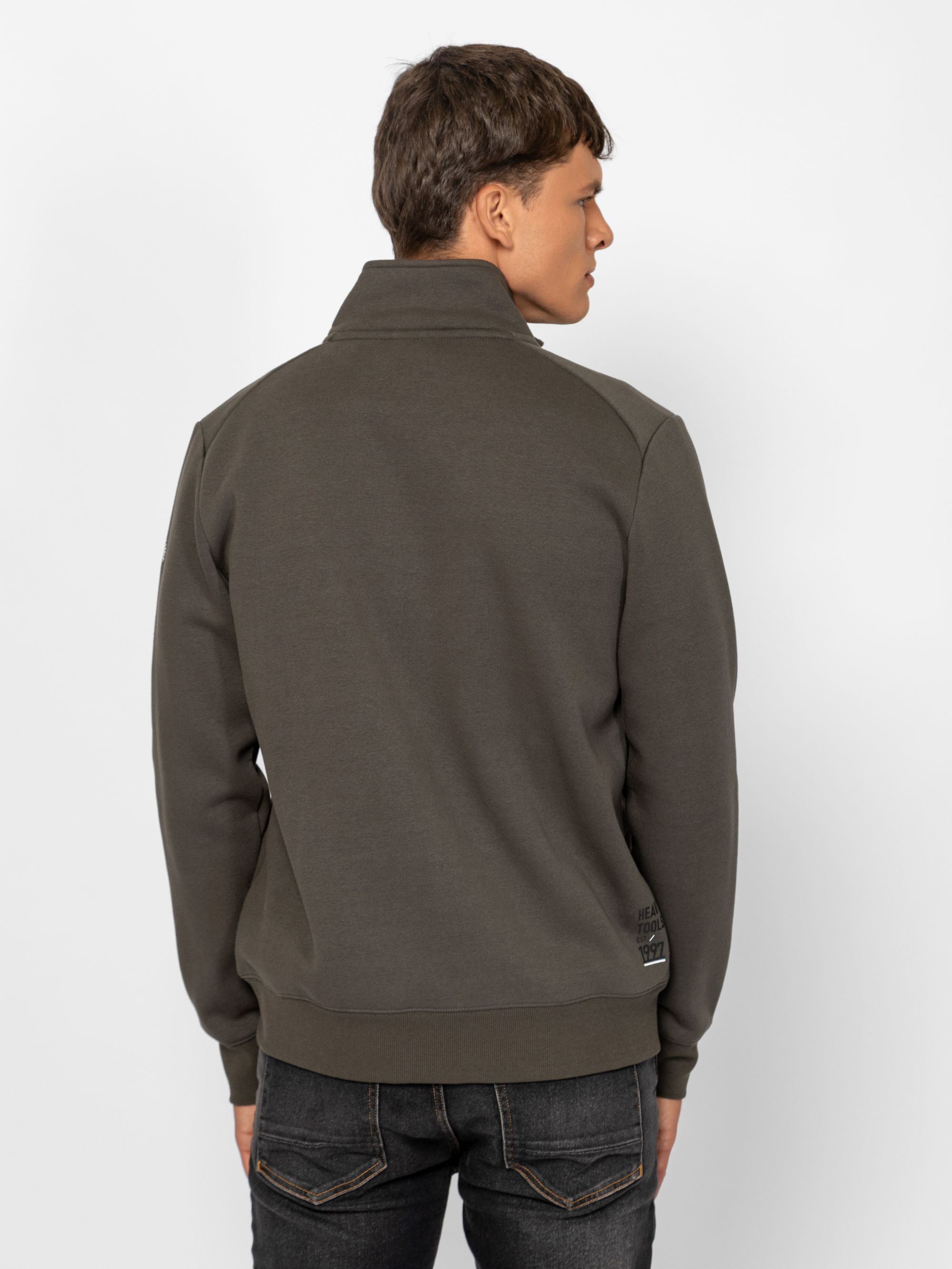 Férfi cipzáros, állógalléros pulóver, sportos szabással, bordás passzés kézelővel és aljjal, szabásvonalba helyezett cipzáros zsebbel, kis nyomott márkajelzéssel az ujján, a zseben és a hátán. Viseld hozzá ZANON melegítőnadrágunkat az új kollekcióból. Anyaga: 80% pamut, 20% poliészter, belül bolyhozott fleece. A modell 188 cm magas és L-es méretet visel.