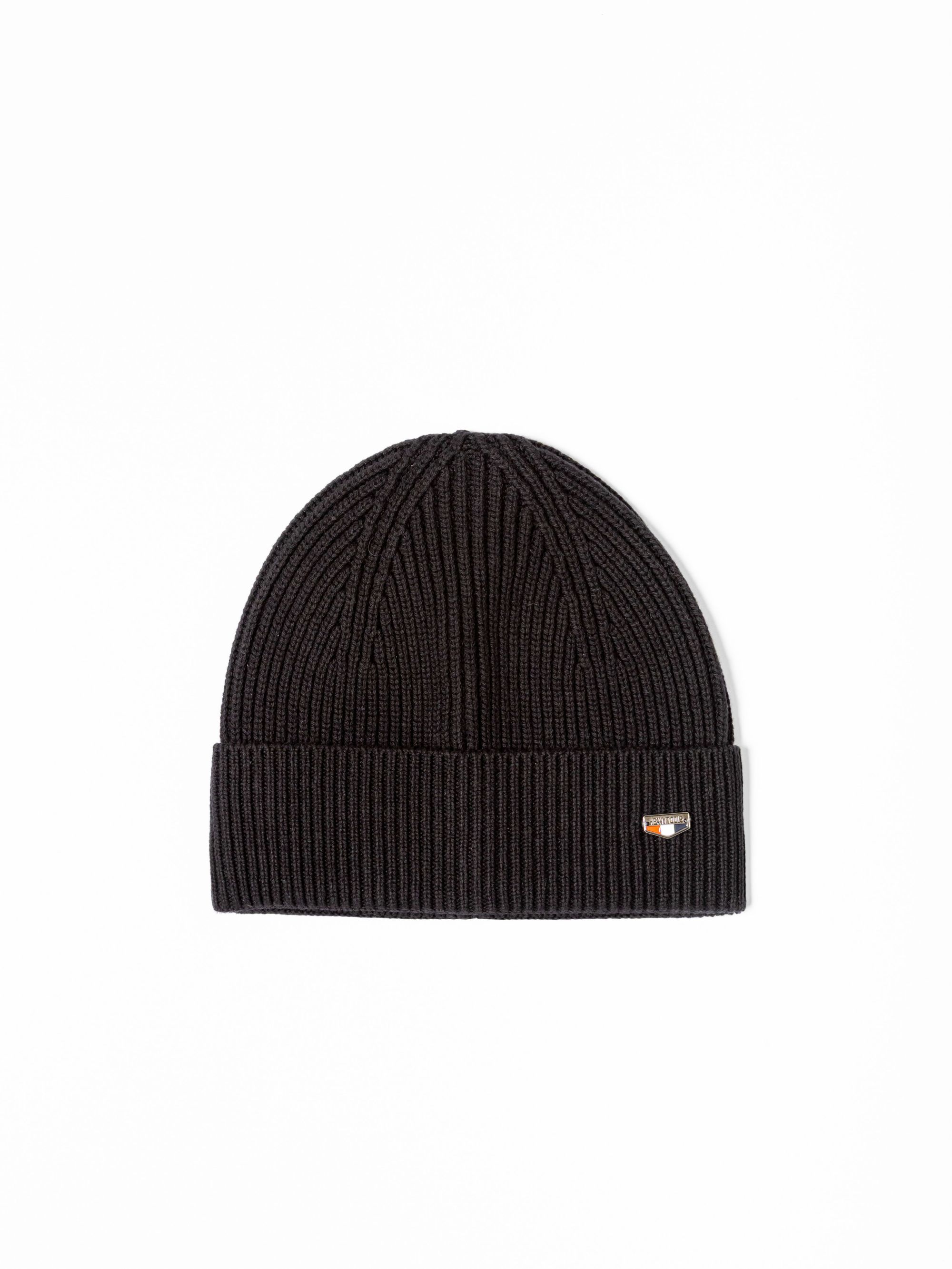 Férfi kötött sapka, bordázott kötésmintával, alap színekben, oldalán kis fém márkajelzéssel. Anyaga: 97% pamut, 3% elasztán.