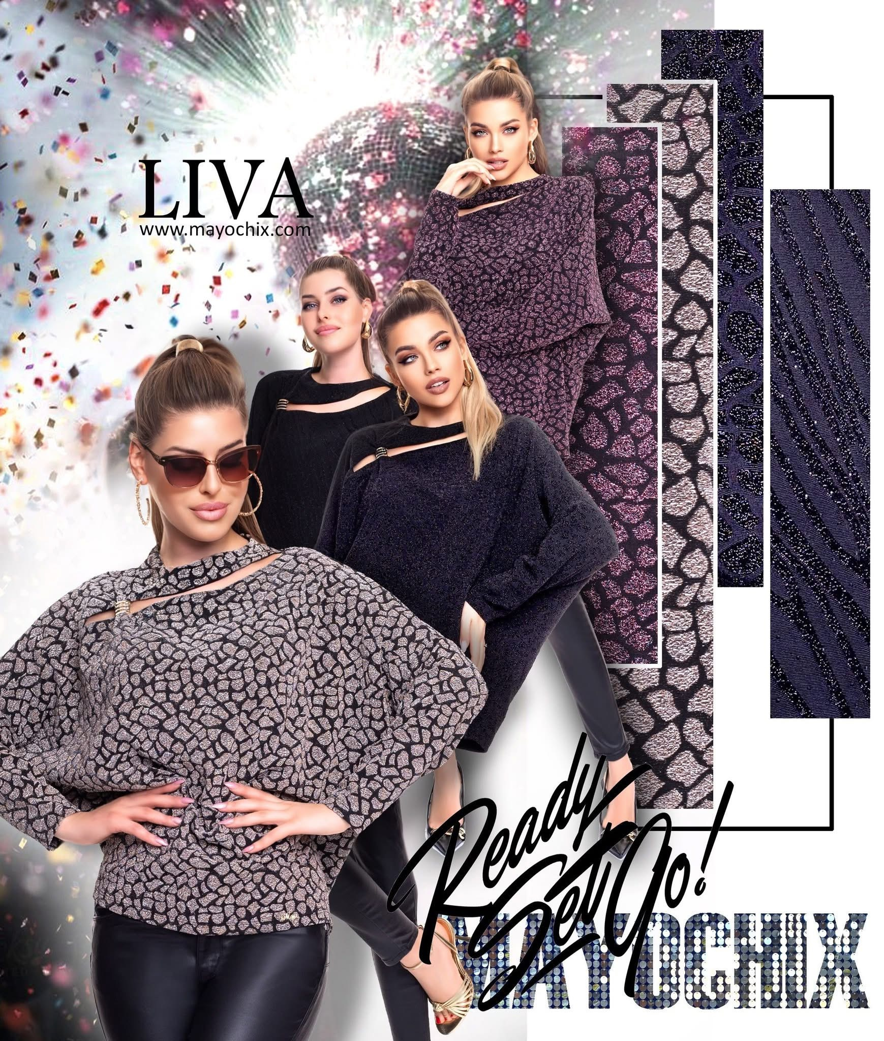 Elasztikus, lurexes anyagból készült lezser szabású tunika kivágott mellrésszel, fém díszítéssel.