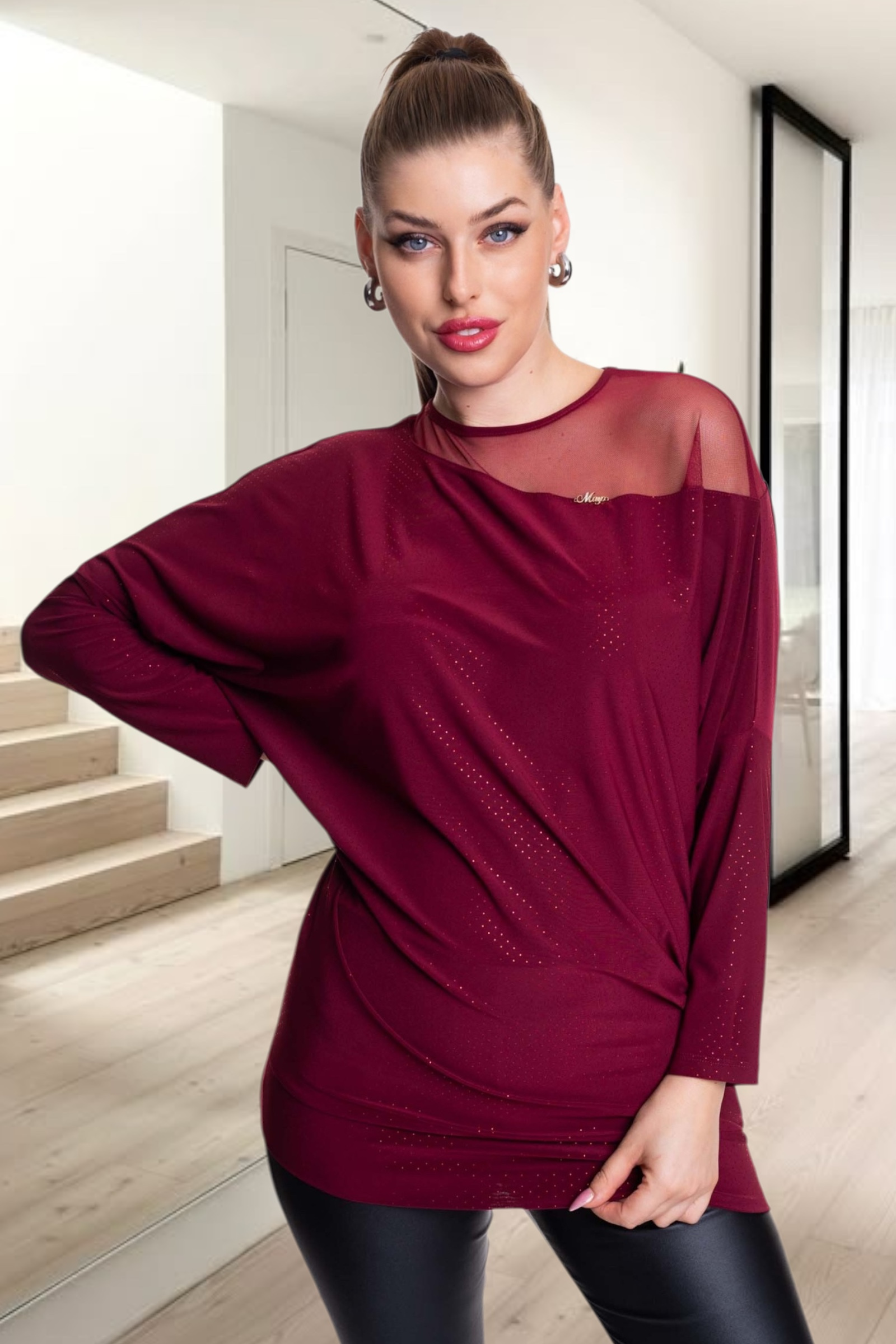 Kezdőlap » MAYO CHIX 2025 ősz-tél » MAYO CHIX Trixi mintás alkalmi tunika/burgundi