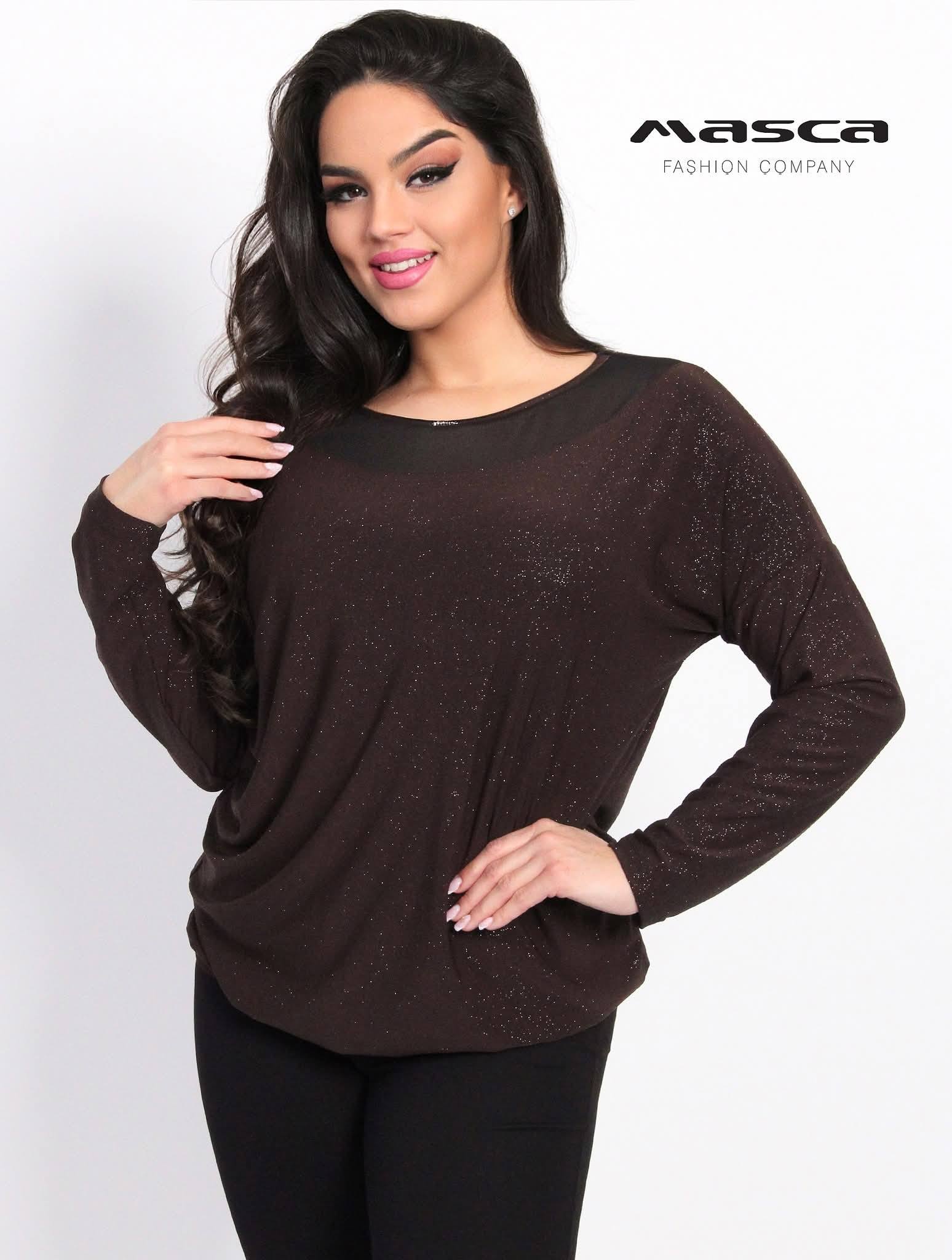 Kezdőlap » MASCA 2025 Ősz-Tél » Neccbetétes csillámos bő felső/csokibarna